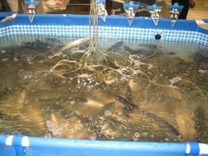 "Fresh" Fish Pools – notice the belly-up fish in the back.