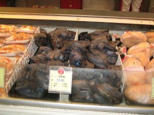 The really interesting stuff happened when we got to the fresh meat section. We couldn’t actually get to the 50 yards of the trough of meat, because there were so many people crowded around poking, flipping, and bagging the meat. We just watched from the backrow being swept across by the current. We saw all kinds of seafood, and even little kiddie pools full of live fish. There were people there to help you net a fish and bag it for you. Just as Tenille was thinking, "I wonder what they do with the fish? Does it just wriggle alive in your grocery bag?" Then thwap! It sounded almost like a firecracker. Right in front of us, a Carrefour employee swung a net over his head like an axe and slammed it against the floor. We could see the fish twitching it’s last twitches in the net. Tenille’s eyes went about as wide as I’ve ever seen it. Then nervous laughter spilled out uncontrollably. She must have stood there and stared for about 10 seconds. I suppose there are less humane ways to kill fish…