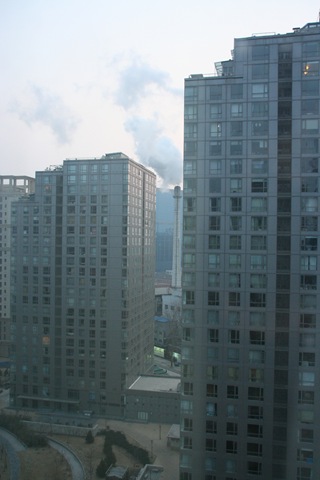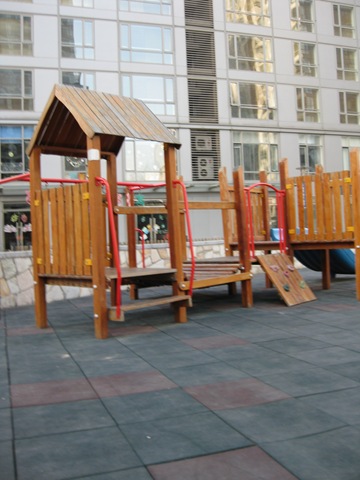 This is the view from the playground (and also from our apartment window).  If you blow up the picture, you’ll see an industrial smoke stack puffing out clouds of something…  It’s always great to have one of those by the playground and your residence…. raises home values…