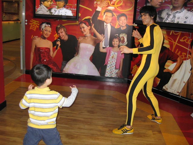 Enough on bags, back to Hong Kong. We thought we had gotten used to being in tight quarters until we saw our Hotel Room. The room was a King size bed with about 2 feet on 3 sides of it to walk around. There was a flat screen TV on one wall. It was a bit tough with the 2 kids, but we managed ok. They also had a movie system which had something like 2000 movies. When I turned it on, it said that they can only be played one at a time, so some movies may not be available. That was enough for me to think that there was some respect for anti-piracy laws, and we watched Kung Fu Panda. 3 times…