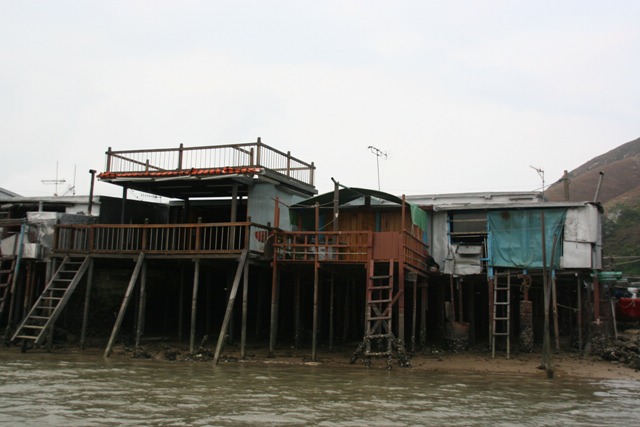 We also went to a fishing village called Tai O. Many of the houses were built upon stilts. We were there during low tide, so we didn’t get to see the houses as if they were floating on the water. Just by chance, a lady offered us a ride in her boat around the village and we accepted her offer. We road in a small boat with two other couples. One couple was from Hong Kong and was taking another couple around. The lady from Hong Kong spoke English very well and fell in love with Andrew. She ended up giving us an English tour as the boat drove around the town. Even after the boat tour, she stuck with us and explained about the town. The others in her party seemed a bit annoyed with her as she stayed behind with us. Ends up that the town has changed a lot over the last 5-10 years. The government had built housing inland for the inhabitants. However, you had to pay taxes if you lived in the government housing. Many people chose to stay in the stilt houses and pay no taxes. But, there was a fire a few years ago which burnt down many of the houses. We walked through the small market (which was basically an alleyway), and saw a lot of live seafood. The shrimp looked more like an ancient bug than the shrimp that I’m used to. The Hong Kong lady said that they’re supposed to be related to the ancient fossils.