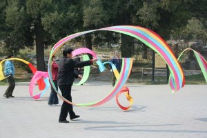 The local culture in the parks is fun to watch. There were people dancing around with these huge ribbons while a woman sang into a microphone. Later on in the park, we found like 50 people line dancing. We were amazed at how many dances they knew!