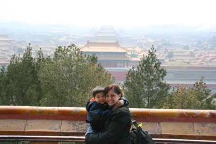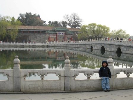 We went to Jingshan Park by the Forbidden City for our Monday family outing. It is a beautiful park in the middle of the city. In the park, there is a hill with steps leading up to a Pavilion that gives a beautiful view of the Forbidden City and surrounding city. We opted to leave our stroller at the bottom of the hill behind a tree thinking it would be safe. We summited the hill, took in the great view and made our way down only to find that our stroller had been stolen. Seriously, who would take a stroller? We were so bummed! I went to one gate to ask the attendants while Don stayed at the "crime scene" to ask any passerbyers if they’d seen our stroller. At the gate no one spoke English, so I did my best to explain with my very limited Chinese and pantomiming skills, but it didn’t really work. I tried calling our tutor, Bill, and ayi, Luo, to help translate, but no luck. So, Don and I met back up. We searched all over, and finally went out another gate. Don speaks better Chinese than me and has "mad pantomiming skills" (his words), so he was able to convey what had happened to the guy at the gate. It’s very amusing to watch us, I’m sure. If you can imagine with me, here’s how the conversation sounded (translated from Chinese)/looked: