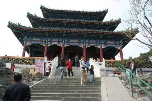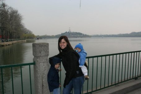 We caught a taxi, and I showed the driver the map I had printed out for a popular dim sum restaurant (several locations in Beijing), to which the taxi driver said didn’t exist. He started naming off the locations, and we finally agreed to go to the one by Dietan Park. (Don and I are really surprised that we’re starting to understand some of what the taxi drivers say to us.) We had been to the restaurant before during the New Year’s Festival, but this time it was much less crowded. The food was great! We walked through a Hutong (old Chinese alleyway) and over to Beihai Park. We were solicited by several pedicab drivers who wanted us to take a pedicab tour. "Regular price 180/person. I give you 180 for whole family." Don wanted to walk around. I kind of wanted to take the tour to rest my feet. But, we continued on. As we walked away from the driver, he yelled, "Okay, 100 for whole family." Well, now we know how far down we can bargain when we have visitors come. Beihai Park was beautiful! I have to say, the parks in Beijing are SO nice! You have to pay a little (like a $1) to get into most of them, but I have no problem paying.