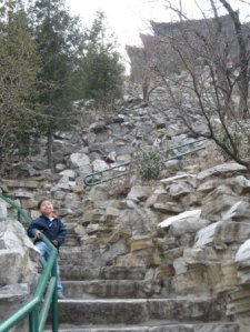 Hiking up the stairs to the pavilion. You can see why we didn’t want to lug the stroller up with us.