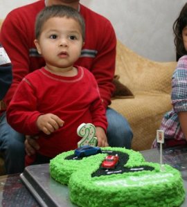 Andrew turned two, last Thursday. We had a small celebration with family on Thursday night at Claim Jumpers, then at the Family Fun Center. Andrew, in general, is much more daring than Caleb was at that age, and he’s not hesitant about trying to climb things that might be slightly beyond his capability. I suppose that’s a good characteristic to have throughout life, unless it involves very dangerous things… Unfortunately, most of Andrew’s challenges at this age involve something dangerous.
