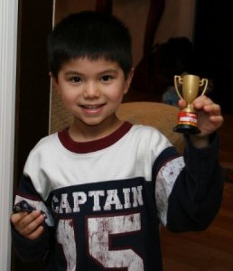 The Hot Wheels race was pretty exciting for the kids (and some adults). The finalists came down to Caleb and Maury Church. In the end, Caleb ended up winning two out of three races. Some say it’s not about the car, but more about the driver, but I think in this tournament, it was pretty much all about the car. Caleb won his first trophy (the Andrew Cup) and he was happy about that… He kept asking if it was a "real" trophy. I told him that all trophies are real, unless you got it for no reason… I think that’s right…