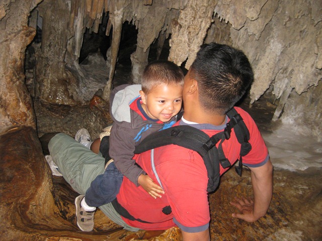 In the morning, we found that the Comfort Inn dining area had a waffle maker which was fun. We hurriedly ate our breakfast and got back on the road. Tenille remembered going to the Lewis and Clark caves when she visited Yellowstone as a young girl. She said that it was one of the only things she remembers and really wanted to go again. You hike about half a mile from the visitor center to the top of the cave mouth. The actual cave is a hole in the side of a hill that drops straight down for hundreds of feet. You end up walking down about 600+ steps from one cavern to another to emerge out of a man made tunnel that connects to the bottom of the cave. Before you enter the cave, you are asked not to take flash photography and not to talk in the first couple caverns. The tourists didn’t seem to take the ranger seriously until she mentioned that it’s so we don’t disturb the bats. The first 10 minutes of the tour was silent. It was almost as if we were in a holy place. The next few hours we were crawling, sliding, squatting awkwardly through hundreds of feet of cave. It was pretty amazing. I highly recommend seeing it. However, I don’t recommend going through the tunnel with a toddler in a front pack.