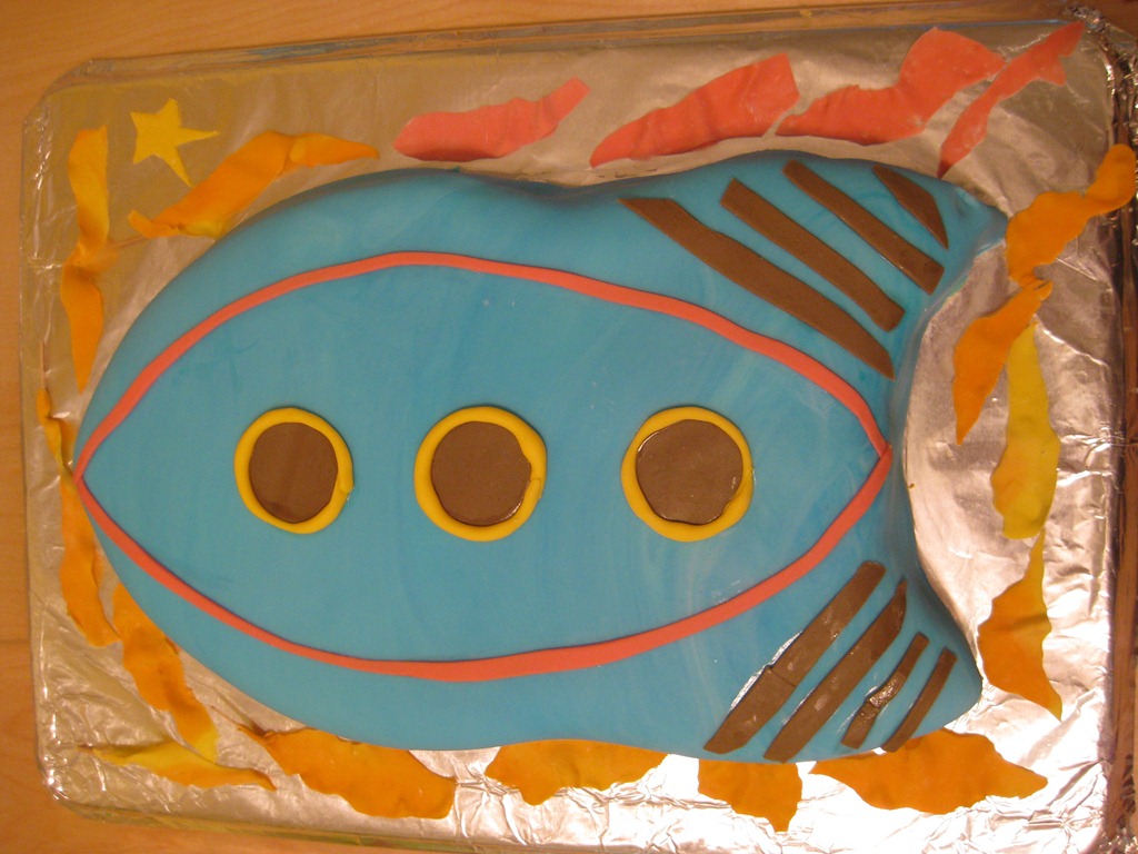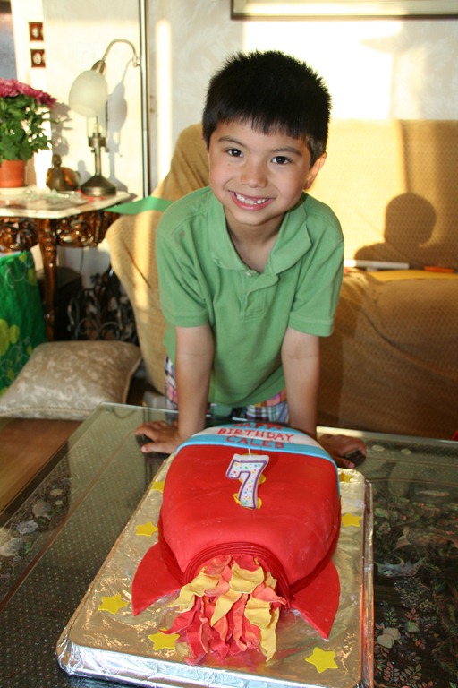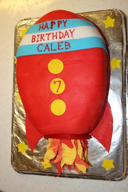 Happy Birthday, Caleb! This year, Caleb had a Rocket theme for his birthday. Now that Tenille has been making elaborate birthday cakes, she is trapped into the curse of having to outdo the previous year. She got some Fondant lessons from her friend, Kay. (If you don’t know what Fondant is, don’t worry – you’re probably just a guy. I’m still unclear what it is…) Kay helped Tenille create a “practice” cake a few weeks ago.