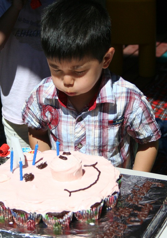 It was getting a little bit tense when the cake fell behind schedule by a few hours… and there may have been some mutterings about “never doing this again… “ But, after Caleb saw the cake and beamed at his mom screaming, “I love it!” she very quickly forgot about the intense effort. I imagine this is similar to how women choose to have multiple children.