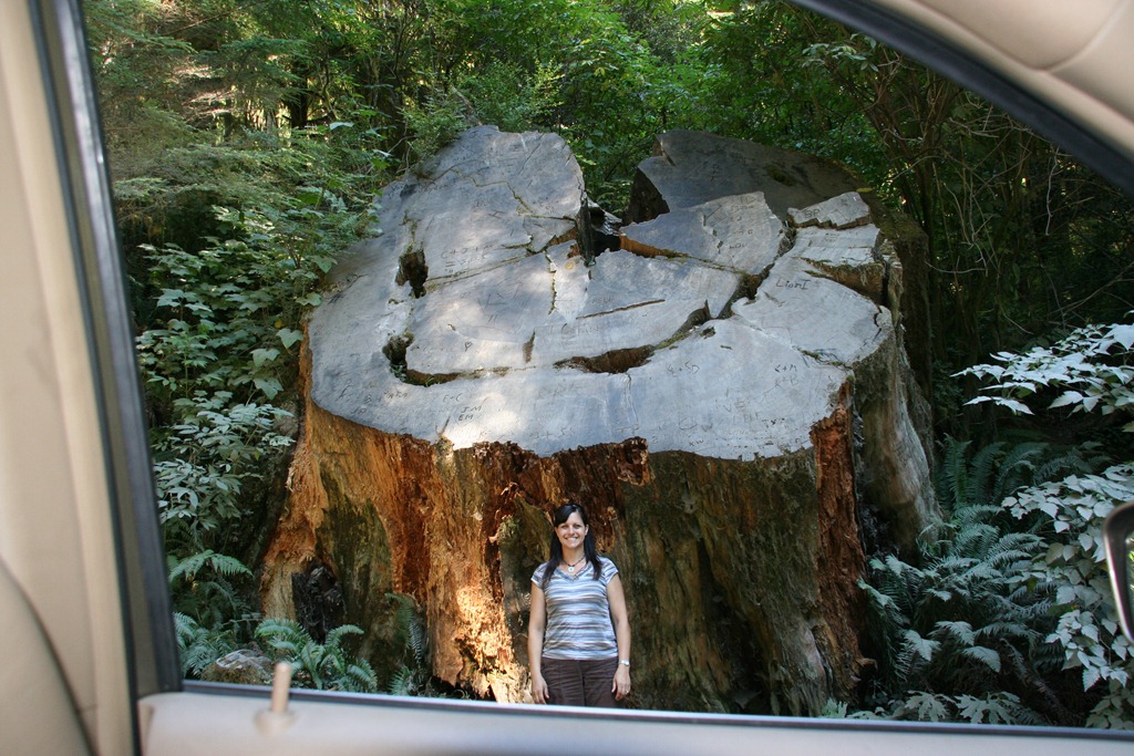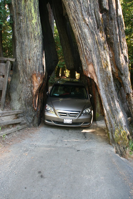 On the last leg of our California trip, we spent some time in the Redwood Forest. Tenille’s MUST-DO list included driving through a tree. So, we paid the $6, folded in our mirrors and drove through a gigantic dilapidating tree. For $6, you also get to take a picture with your car on top of a tree as well as play in their “tree house”.