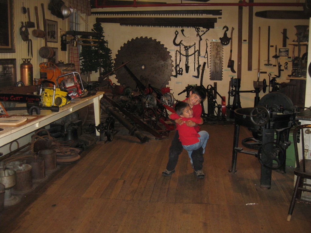 On our first evening in the Redwoods, we ate at the Samoa Cookhouse. I thought it was going to be a pit-roasted pig combined with some fire dancers, but it actually had nothing to do with Samoa the Pacific Island. Samoa was the name of the island that this restaurant was on. It was mainly a logging island and the restaurant was primarily used by loggers through the last century. You paid a fee and you get to eat as much as you want of the 2 different entrees they cooked that evening. In our case, it was Pork Ribs and Beef Roast. Both were quite good. Half of the restaurant was a museum of old logging tools and artifacts. Like good parents, we told our kids to go horse around in the room with all the rusty saws.