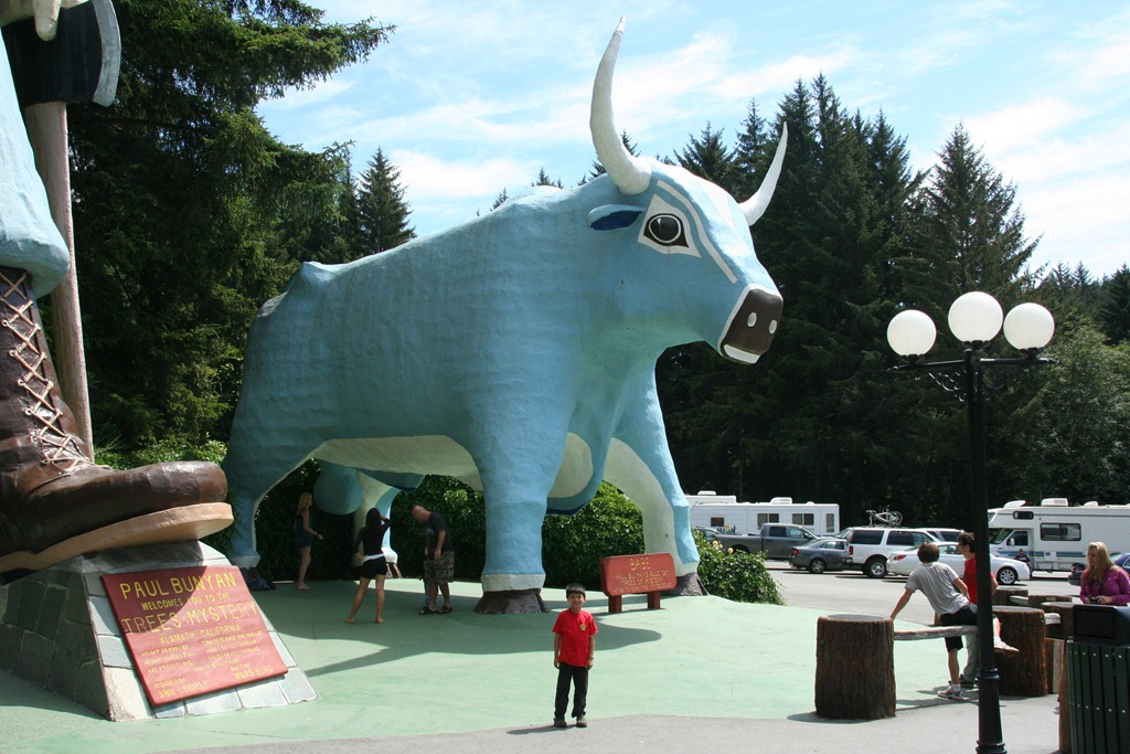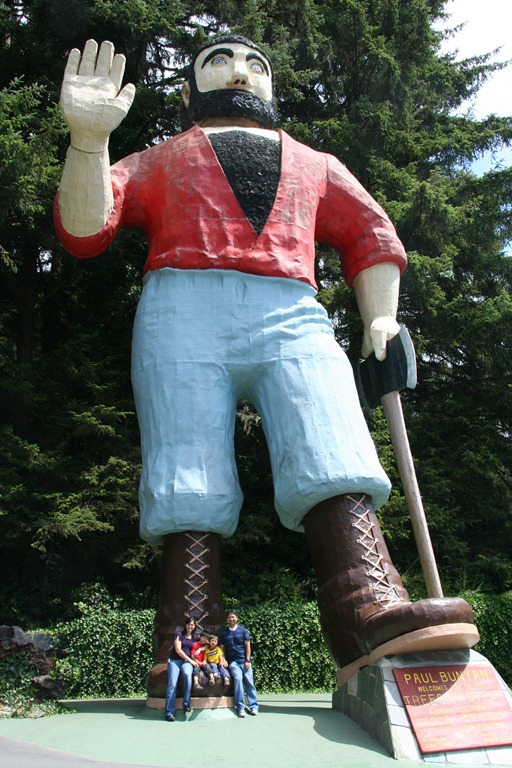 Aside from the trees, perhaps one of my favorite attractions was seeing Paul Bunyan and his Blue Ox, Babe. They are not just statues and the pictures probably don’t do them justice. First, Paul Bunyan’s arm waves. Second, he talks. I’m not sure if it’s a guy inside Paul Bunyan or watching from the building across from Paul Bunyan, but he will talk to you. In the picture below, he encouraged us to sit on his shoe, then counted down for us “3…2…1.. cheese!” I saw a man bring his teenage daughter up to Paul Bunyan and start talking to Paul, “Do you remember us? Last time you saw my daughter, she was 5 years old!”