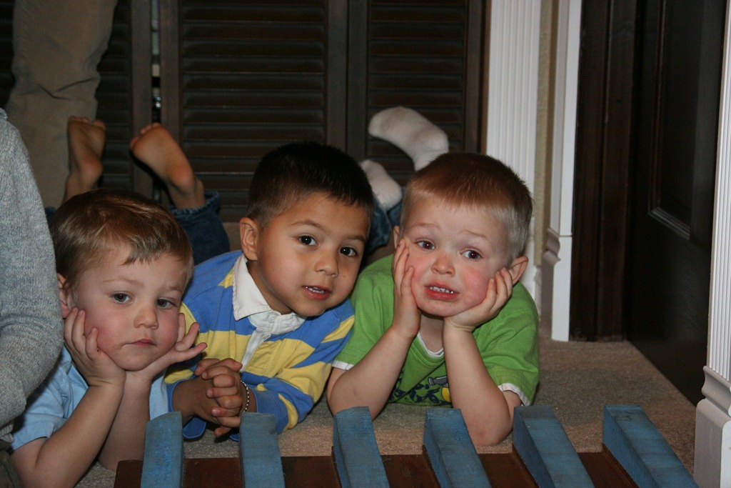 We, also, dusted off the old Pinewood Derby Track (that we got for free a few years ago), and assembled it downstairs. The previous nights, Andrew, Caleb, and I were pounding together some very basic looking pinewood derby trucks for each family. In Mater style, we raced the cars backwards down the track. The winner was the Tomlinsons. It should be noted that they brought their own car. We knew we were in trouble when they brought a silver, voluptuous vehicle reminiscent of a Dodge Viper.
