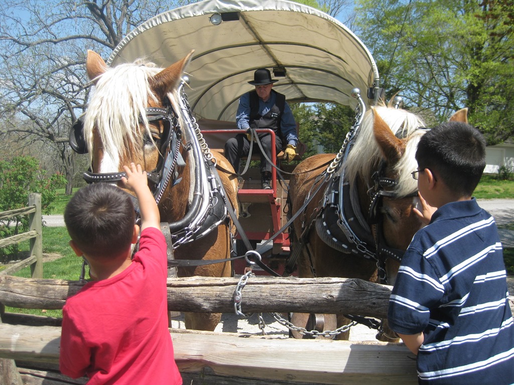 We got to ride an ox cart. Probably the most questionable activity in Nauvoo. The fencing in the picture was built after it was found that one of the oxen doesn’t like women or children. In the past, it has taken its horn and ran it up a woman’s side and arm. Not comforting. Apparently, in general, the oxen are gentle. In the pioneer days, the children often drove the oxen. They also didn’t spook like horses.