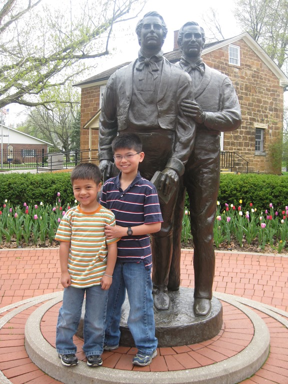 This is a statue of Joseph and Hyrum Smith at Carthage jail. It was said of them, “In life they were not divided, in death they were not separated.” Hopefully, the first part will be said of Caleb and Andrew as well.