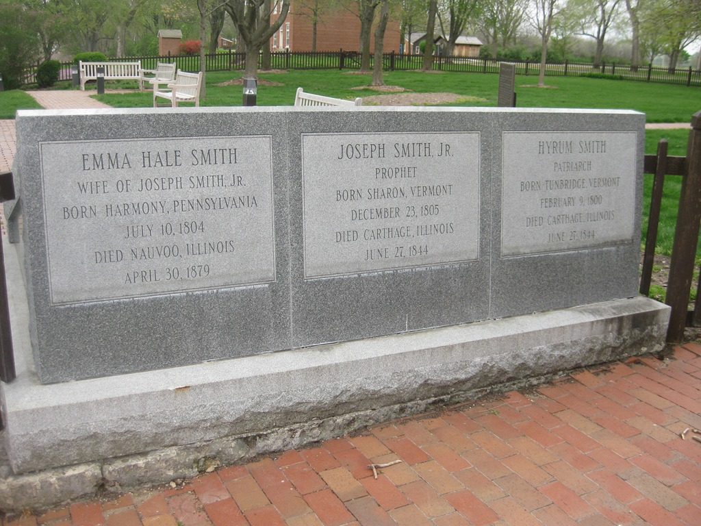 The final resting place of Emma Smith, Joseph Smith, and Hyrum Smith. The Smith cemetery is owned by the Community of Christ. They gave a tour explaining that Joseph and Hyrum’s bodies were hidden for a long time for fear of desecration. The bodies were finally found after Emma’s death on the Smith property. They were all moved to a central location and markers were erected.