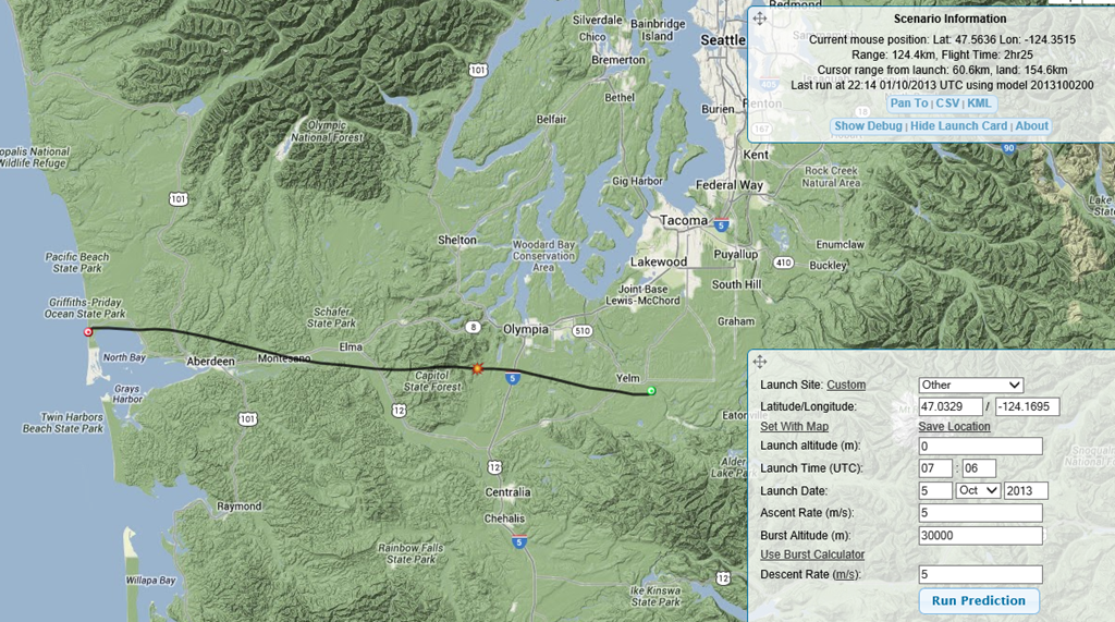 To predict the trajectory of the balloon, we found a more updated site. We won’t get a true simulations until we are closer to launch date, but we are hoping the trajectory will look something like this…