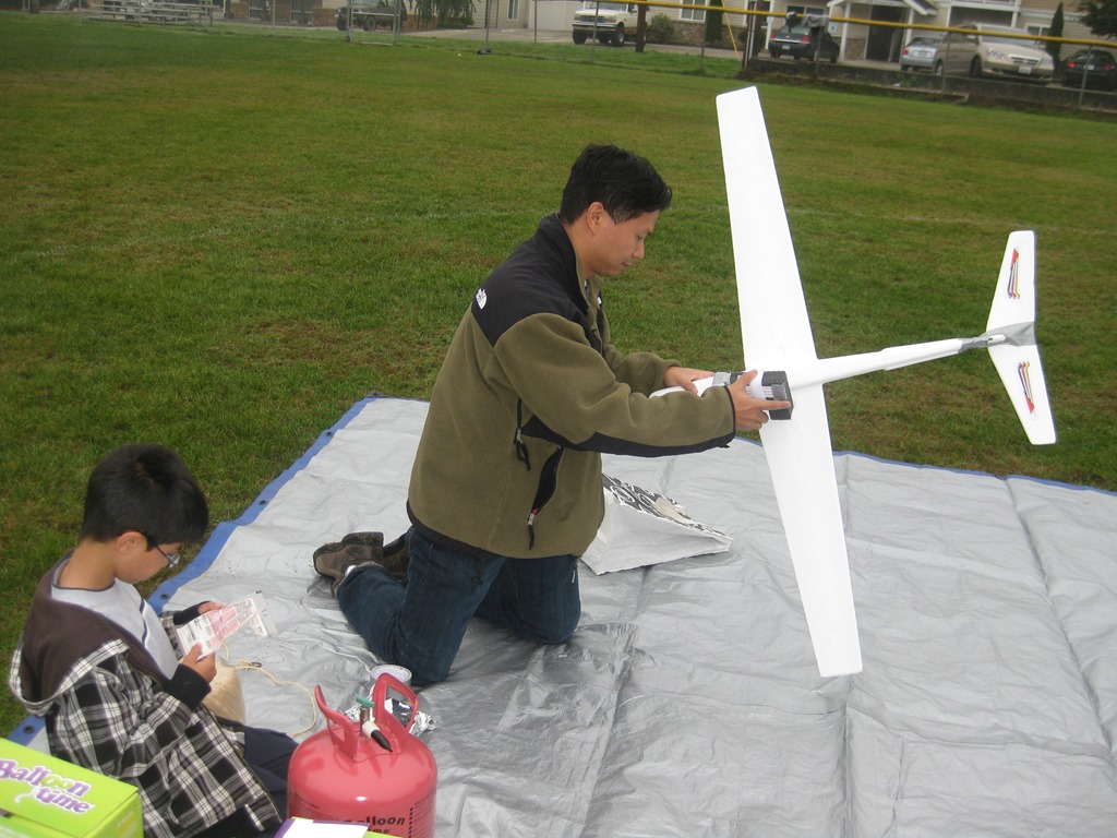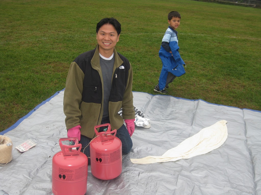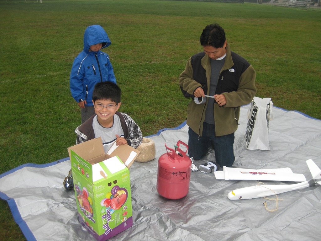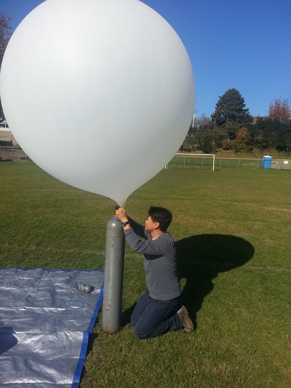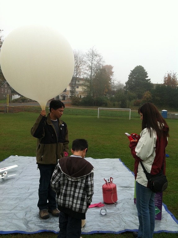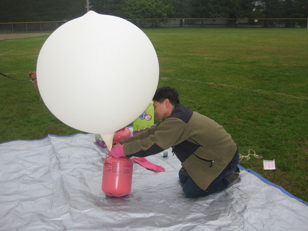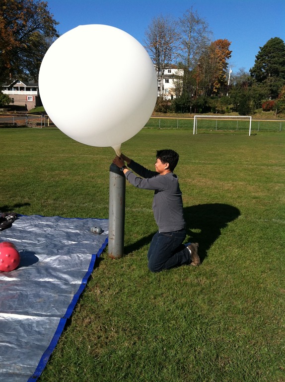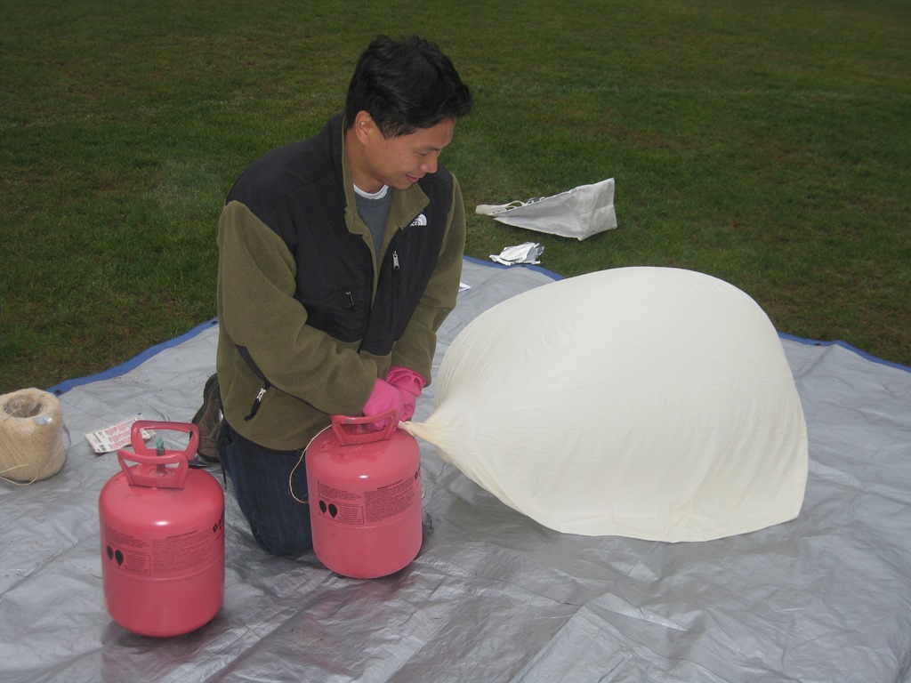 After a final round of duct taping to ensure that the phone package and the wings were not going to detach from the fuselage of the plane, it was time to blow up the weather balloon.