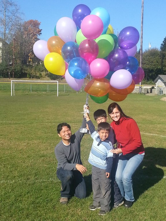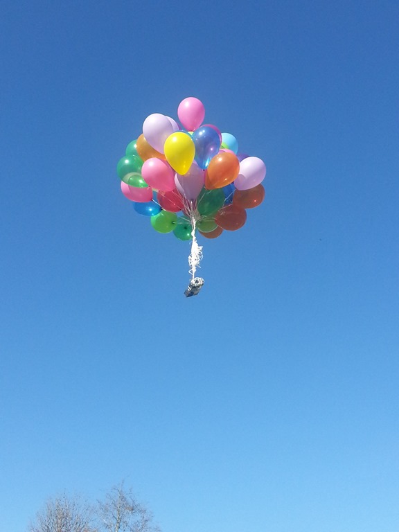 I think the natural immediate reaction is second guessing yourself. But, the measure of character is how quickly you can move forward. We spent about 5 minutes dwelling on what just happened. Then we saw what remained of the party balloon kit. We used about 15 balloons in games waiting for Tenille and my mom. We had another 45 balloons left… and a big tank of Helium… We just created Plan B. We were going to go “UP” style.