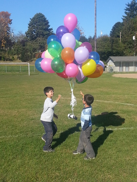 This was now looking like a real NASA style launch. The launch was delayed… but unlike a NASA launch it was only delayed for a few hours. The kids decided to stick with me and my mom went with Tenille to Lacey. I took out the Droid 2 out of the duct taped casing and turned it off to conserve batteries. While we were waiting, we had 60 balloons to play with, so we made up a whole bunch of games and played them.