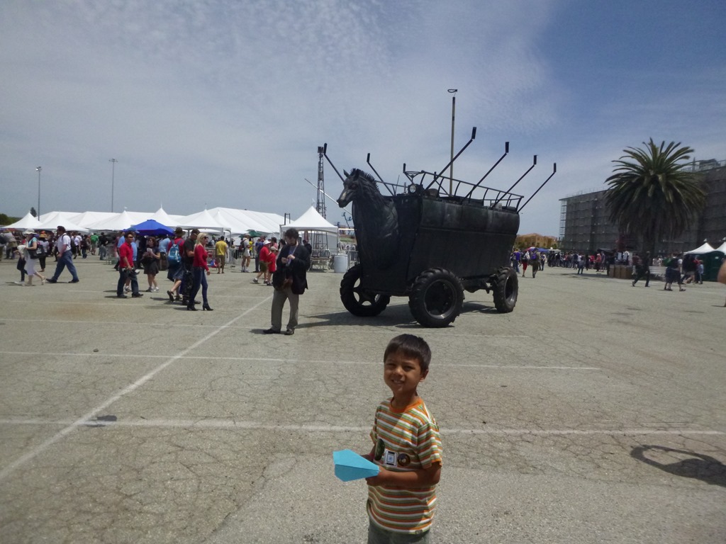 We attended the World Maker Faire in San Francisco. It was full of all kind of geeks that must just have an infinite amount of spare time. It gave me something to aspire to. One of the first things we saw was a group of people that converted their Rascal scooters into horses and they were riding those around the fair. (Later, I found out why… because 10 hours of walking around makes everyone cranky… ) Andrew got to also ride around on a remote control horse that Tenille drove.