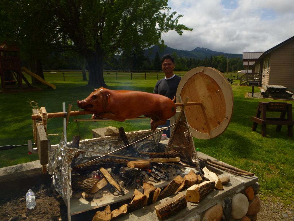 The following day, we enjoyed the other amenities at Ensign Ranch. Ensign Ranch is a property owned by the Church of Jesus Christ of Latter-Day Saints. For anyone interested, it is open to everyone. It is about 25 miles East of the Snoqualmie Summit ski resort. It is about $10-$30/night depending on whether you stay in a campsite or a cabin. There is horseback riding, canoeing, fishing, and a gigantic slip and slide. Most importantly, they have a pretty nice pit to do a pig roast.