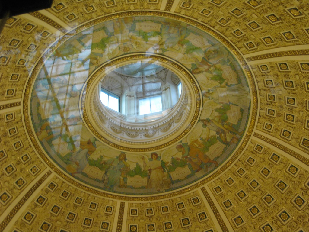 A moon rock was embedded in this stained glass window. This is the science and technology stained glass window.