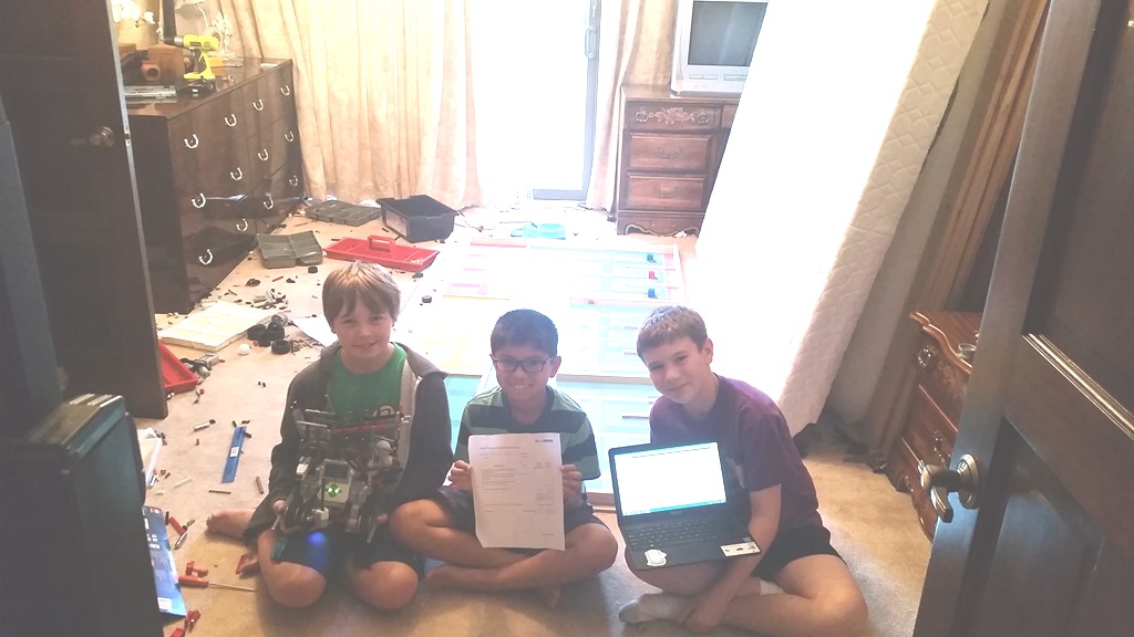 Mid-summer, we formed another team and entered the World Robot Olympiad competition. Caleb, Joey, and Jackson have been working for about 8 weeks on building a robot that can detect the color of lego blocks, push them to a certain location, and dispense ping pong balls.