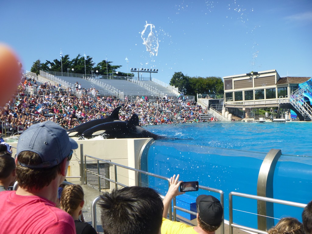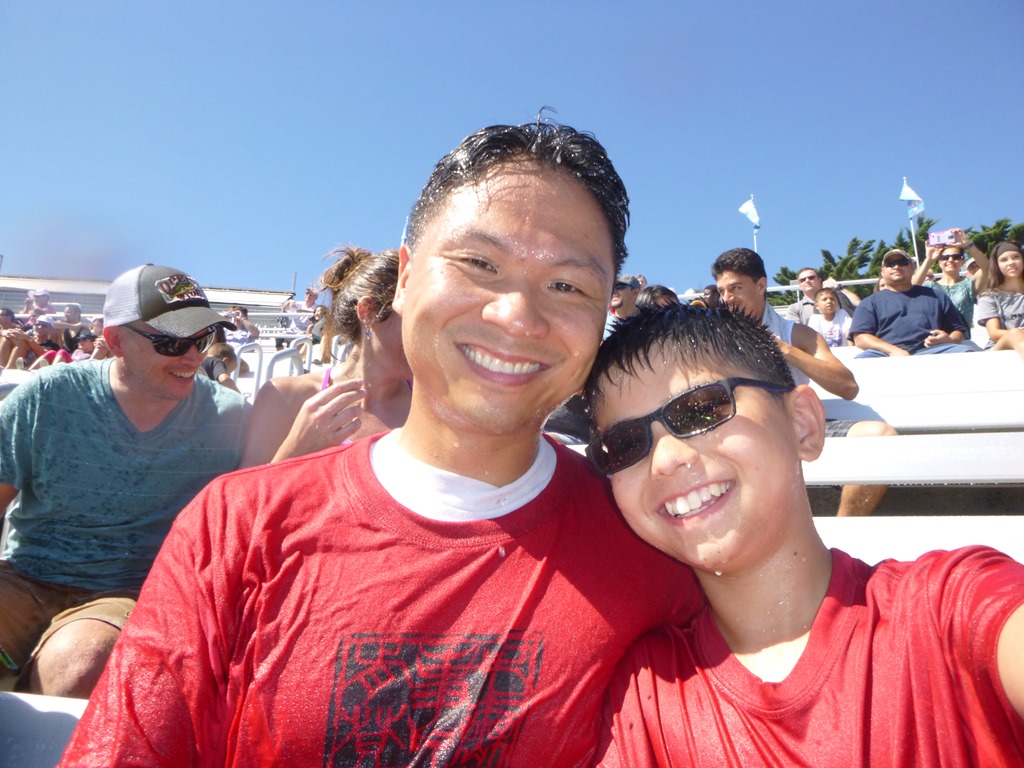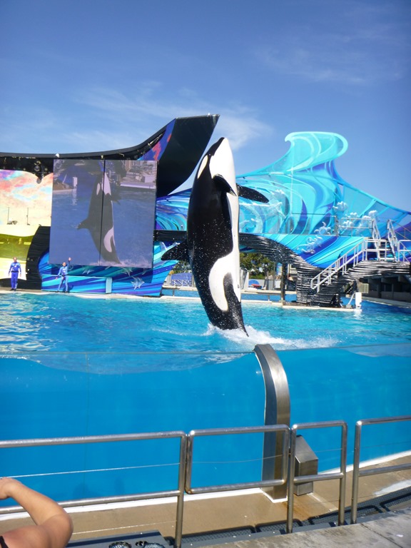 Caleb and I sat in the (Splash zone) of the Shamu show. The Whales did not disappoint.